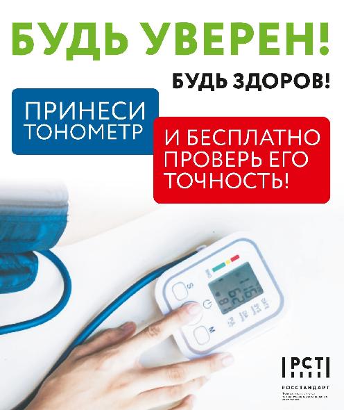 ФБУ "Алтайский ЦСМ" присоединяется к данной акции и на безвозмездной основе приглашает граждан для проведения контроля выходных параметров бытовых тонометров артериального давления. Наши специалисты будут ожидать всех желающих по адресу:
